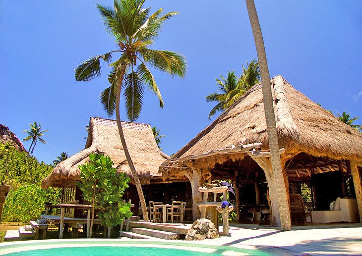 construidos con materiales locales cosechados durante la restauración permanente de la isla, los once villas de planta abierta privadas llanta de una hermosa franja de playa que las cerdas con las palmas de coco. Beachy sofisticada elegancia mejor describe la decoración, que incorpora un montón de elementos de textura y materiales naturales. piscina de inmersión en grandes cubiertas, camas compensadas y profundas bañeras son características típicas, y las puertas se pliegan hacia atrás para dejar al aire libre. La suntuosa Villa Isla del Norte en el otro extremo de la playa es el último refugio de luna de miel.