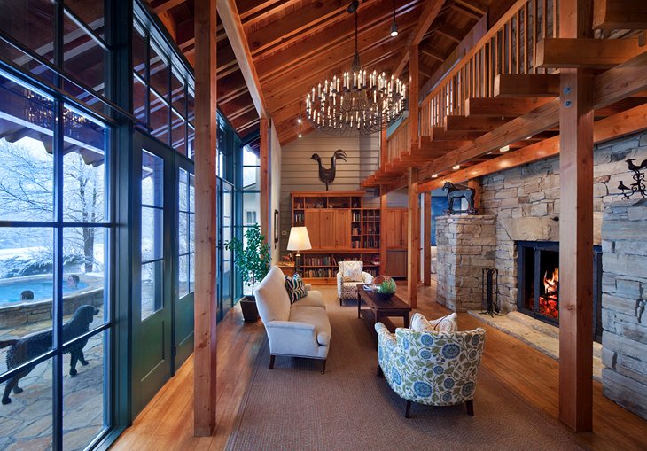 Creado por los arquitectos y diseñadores estimados, los 20 alojamientos de decoración única van desde acogedoras habitaciones de cabañas de madera, casas de campo de estilo escandinavo de varios niveles, y rincones de mediados de siglo. Chimeneas, antigüedades, arte personalizada, y bañeras de hidromasaje de piedra añadir a la sensación hogareña en muchos, y todos tienen hermosas vistas de los alrededores. Todas las comidas están incluidas en las tarifas, y las creaciones culinarias, hacen hincapié en los sabores frescos sanos con menús personalizados y personales de un enfoque de la granja a la mesa. Las tortitas soufflé de limón con fresas Vermont son los favoritos para el desayuno.